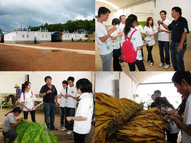2009年8月5日,辗转40几个小时,管理与经济学院赴云南烟草行业暑期社会实践调查团一行七人抵达了春城——昆明,经过简单的休整我们率先抵达了国家级现代化烟草农业建设试点单位,云南省楚雄市子午镇法邑烟草种植专业合作社和烘烤服务社,烟草种植、烘烤是烟草产业的上游的工序,我们的社会实践也将从这里开始。