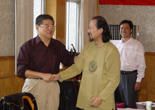 党委书记焦文俊为滕格尔教授颁发了聘书、佩带了校徽。并说,现在正值我校在举办2005年艺术节,也即将迎来65周年校庆,聘任腾格尔教授也是其中的一件盛事,从教育改革、培养创新人才的高度来看待这件事情意义重大。
