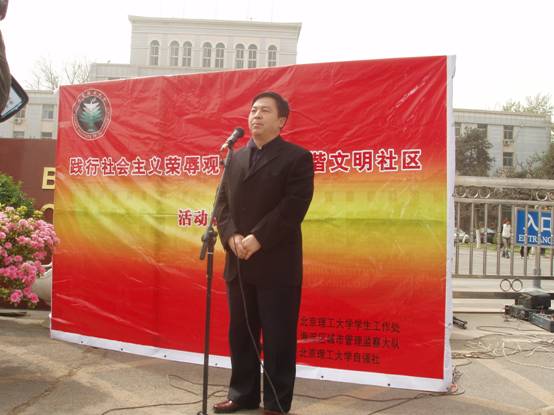 杨书记强调:该活动一定要长期坚持下去,用实际行动和良好的精神风貌影响和带动全社会共同建设文明和谐的社会。作为承办比赛的高校,为了更好地迎接奥运,希望同学们用双手建设美丽的中关村大街,用实际行动让耻辱远离我们,让文明永远留在我们身边。最后,杨书记预祝此项活动圆满成功。