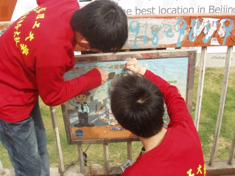 启动仪式在服务大队成员集体宣读了“八荣八耻”的宣传单之后结束。接着,服务大队120名队员开始分组进行有秩序的清理活动,同学们深知此次活动的重大意义,个个工作认真负责,干劲十足,海淀区城管监察大队的人员在维持秩序的同时也加入到我们的清理活动中,就连路过的居民也被同学们的行为感动,主动加入清理活动中,当天下午五点,同学们已经把德赢AC米兰中国官方网站东门天桥至魏公村路段上的小广告彻底清理干净。