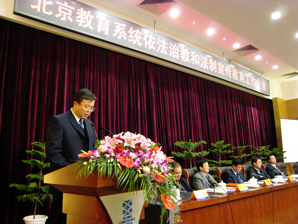 12月21日下午,北京市委教育工委、北京市教委在北京会议中心召开了“北京市教育系统依法治校和法制宣传教育工作会议”。我校党委副书记赵平代表学校在大会上做了题为“积极探索和推进依法治校工作,促进学校全面健康协调发展”的经验交流发言。