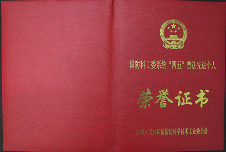 人文社会科学学院法律教师于兆波、党委宣传部部长贺亚兰、保卫部部长李汉军等同志被评为“2001-2005年国防科工委系统法制宣传教育先进个人”。