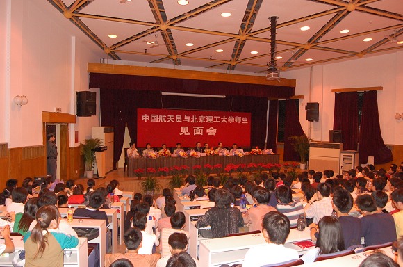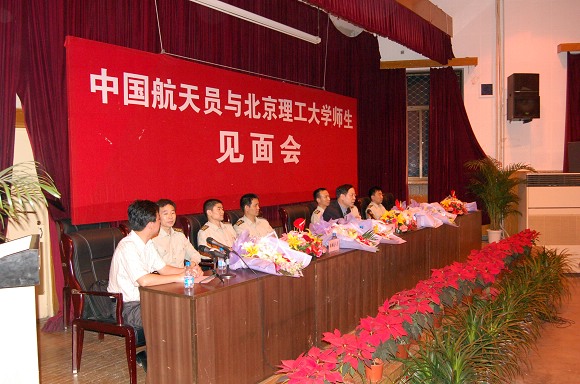 2006年5月25日晚,我校成功举办“中国航天员与德赢AC米兰中国官方网站师生见面会”。“神六英雄”费俊龙、聂海胜等6名中国航天员在中国航天员科研训练中心吴川生书记的带领下,来到了德赢AC米兰中国官方网站,与北理师生进行了面对面的交流。费俊龙、聂海胜等6名航天员受到了我校师生极其热烈的欢迎。