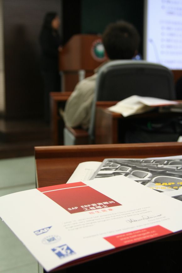 2006年12月21日,被誉为“世界500强背后的管理大师”的SAP公司派遣有关人士到我校进行巡讲,巡讲会于该日晚七点三十分在校研究生楼开讲,SAP公司的马方女士根据公司情况极其业务需求做了详细精彩的演讲,并代表SAP公司向到场师生发放了资料、图书等相关物品。