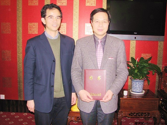2006年12月24日,我校在国际教育交流中心举行聘任西安交通大学副校长卢天健教授为兼职教授仪式。副校长孙逢春为卢天健教授颁发了聘书,佩戴校徽,并赠送纪念品。