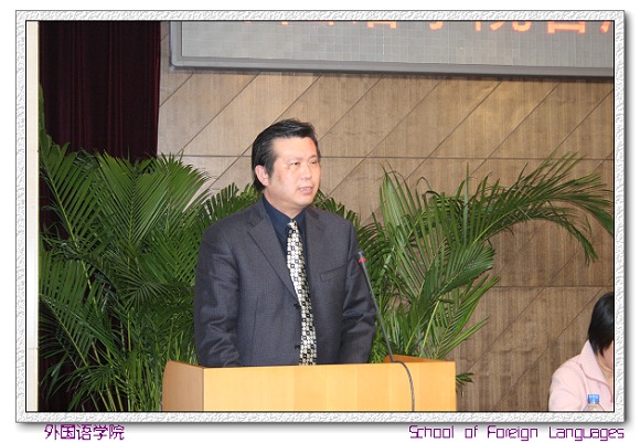 王书记致词中指出,经过十天的学习讨论,外国语学院首届教职工大会暨首届工会会员大会取得了圆满的成功。王书记就学院如何搞好学院的工会、教代会工作提出三点意见。第一、加强党委对工会、教代会的领导,把学院工会、教代会工作做到实处;第二、充分发挥教代会制度在构建和谐学院中的作用;第三、围绕学校中心工作,认真履行工会、教代会职责,推动构建和谐学院的各项工作。最后,王书记向全体教职工拜年,祝大家身体健康、阖家欢乐。