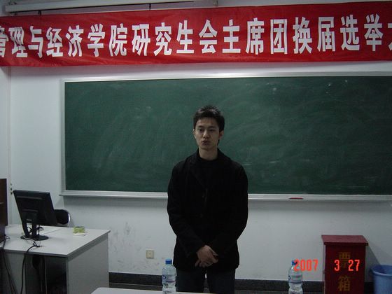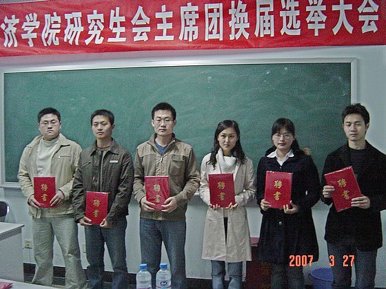2007年3月27日晚,管理与经济学院研究生会主席团换届选举大会在德赢AC米兰中国官方网站中心教学楼1036举行。