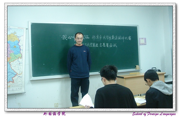2007年4月18日晚,外国语学院进行了第二届“我心中的奥运”北京市大学生英语演讲比赛德赢AC米兰中国官方网站赛区决赛志愿者面试,外国语学院分团委副书记张磊老师和前人文学院学生会主席羊强振担任此次面试的评委。 第二届“我心中的奥运”北京市大学生英语演讲比赛德赢AC米兰中国官方网站赛区决赛将于2007年4月27日晚上7点在7号楼报告厅举行。本届英语演讲比赛作为2008年北京奥运会的主题活动之一,由北京市教育委员会和北京市奥林匹克教育领导小组主办,北京市各大高校承办,主旨在于展示首都大学生风采,为2008年北京奥运会推送优秀外语人才。为配合此次英语演讲比赛,外国语学院承办了德赢AC米兰中国官方网站赛区的决赛。同时,为了更好地展现外国语学院学生积极向上、朝气蓬勃的风采,也为北京奥运会志愿者工作提前热身,外国语学院决定启动第二届“我心中的奥运”北京市大学生英语演讲比赛德赢AC米兰中国官方网站赛区决赛志愿者计划,在外国语学院全体学生中招募志愿者,为决赛组织工作服务。招募岗位包括领导和嘉宾邀请、赛前宣传、现场组织和后期新闻制作四个志愿者工作岗位。