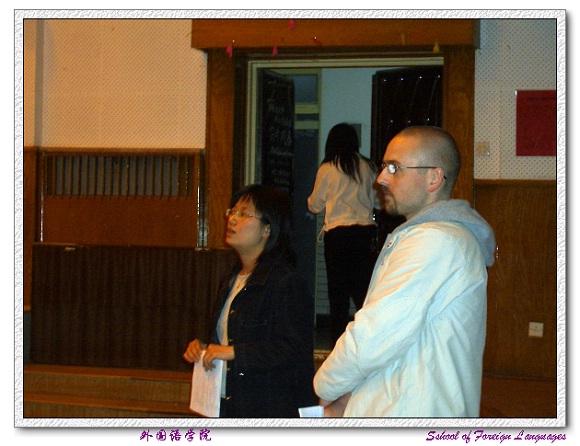 为了使观看的同学们能够进一步了解电影的内涵,外国语学院邀请了很多外教和专业教师为同学们介绍了电影相关的背景知识。在德语电影《Das Leben der Anderen》(《窃听风暴》,荣获06年度奥斯卡最佳外语片奖)展映中,我们邀请了德语系外教Stefan和梁姗姗老师为大家介绍了德国的相关历史文化,有助于同学们更好地了解德国,学习德语。在英文影片《通天塔》展映中,邀请了英语专业教师邢清清老师为大家介绍了影片的深层含义。日文影片展映的是宫崎骏经典的《天空之城》,日籍外教矢野洋子应邀参加展评。影片放映前,矢野洋子老师先为在场观众介绍了该影片的背景,使大家大致了解了影片及其创作者。随后,老师又带领大家做了学说日语的小游戏,观众们热情高涨,跃跃欲试,跟着老师学说影片主人公名字的日语发音,掀起了现场的一个小高潮。