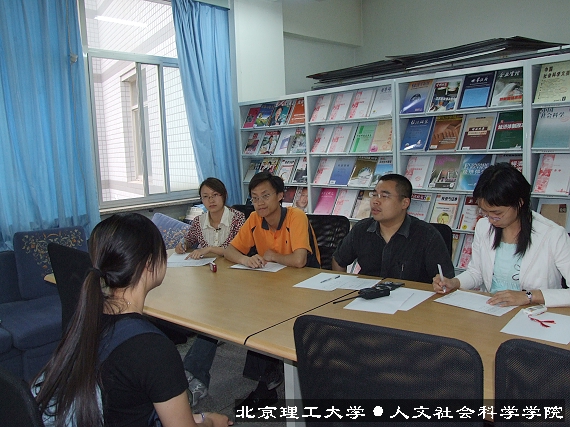 为配合我校进一步推进奥运志愿者工作的总体安排,2007年5月8日人文学院开展了奥运骨干志愿者的面试选拔工作,共有70余人报名参加了面试,学院分团委老师担任了此次面试的评委。