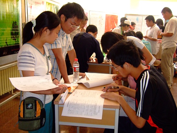 还没到一点就已经陆陆续续的有同学来到七号楼填表等待,我校同学的热情打动了在场每一位志愿者。一点整,血样采集就紧张的开展起来。随血车前来的除北京市血液中心的专业医生外,还有北京市志愿者之家的志愿者,作为生命学院青年志愿者协会的合作单位,他们与我院志愿者一道为前来捐献的同学们答疑解惑。在七号楼大厅,青协会员们详细指导前来捐献的志愿者填写信息表并为他们耐心解答填表中遇到的各种问题。