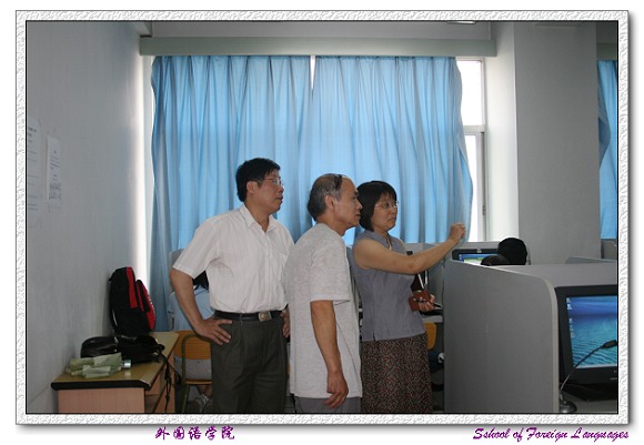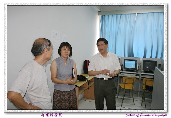 为贯彻学校安全生产月活动的方案,加强安全保障工作,消除安全隐患,外国语学院党委书记王文清老师带领行政副院长林彤老师及其他相关老师对学院的各教研室、实验室、网络视听室等进行了安全检查。