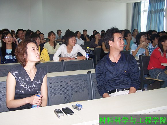 材料学院副院长刘景胜老师、党委副书记副院长韩笑老师出席了本次专题讲座,学院07级辅导员李紫千带领108名本科新生参加了本次讲座。