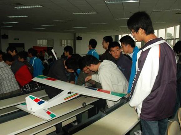 航模队,就是现在的飞行器模拟工作室,作为有鲜明宇航特色的社团,吸引了大批好奇的同学,他们的模型就是他们最好的宣传工具。