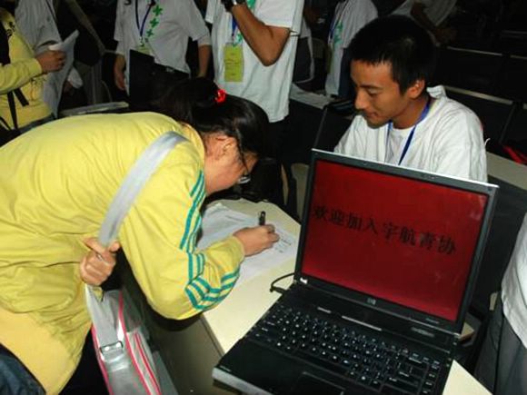 10月13日,宇航科学技术学院各社团在分团委方蕾老师和范鹰老师的带领下赶赴良乡新校区进行了招新活动。由于在学院开学典礼上各社团已经对零七级新生进行过社团介绍,因此各社团到场后就马上开始了招新活动。咨询报名现场十分热烈。