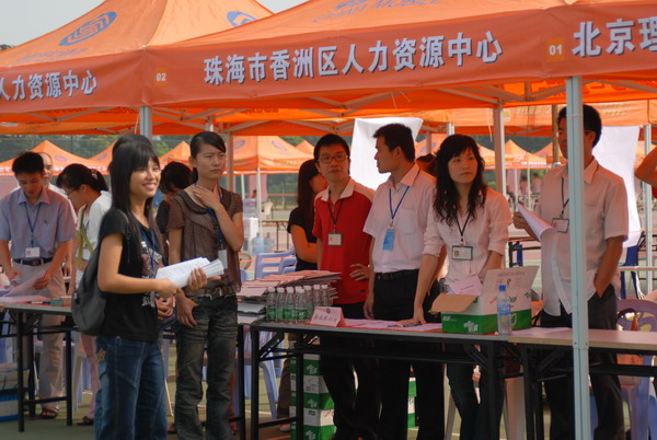 10月27日上午,珠海高校07-08学年首届校园招聘会在德赢AC米兰中国官方网站珠海学院体育运动场拉开帷幕。这次由德赢AC米兰中国官方网站珠海学院和香洲区人力资源中心联合举办、以珠海地区08届高校毕业生为服务对象的招聘活动,共有60余家企业参加,主要集中在IT、旅游行业、金融保险业、制造业等,提供储备干部、文秘、程序员、财会助理、行政助理、市场营销、广告设计师、采编等130个工种900多个岗位。
