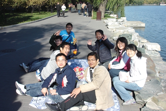 随后,北海湖畔,席地而坐,全体成员进行了简单的聚餐。秋高气爽,平静的湖面微泛涟漪,部员们却是心潮澎湃,交流会进行得异常热烈。