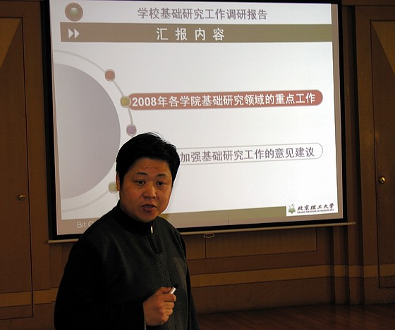 校科技处副处长陶然做《2008年各学院基础科研的重点工作》的报告