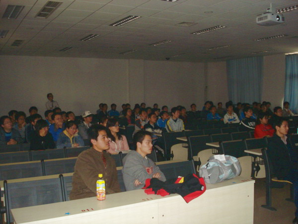 2008年3月8日上午,在良乡校区理科教学楼104室,软件学院共产主义学习实践会组织了07级学生2007-2008年度第二学期的第一次院党课的学习。首先,主席团对上学期党课、实践活动情况进行了总结,对本学期学习计划进行了介绍,强调党员及入党积极分子要继续发扬积极向上的生活、工作作风。随后,办公室主任孙士雄公布了上学期党课的成绩,并对成绩优秀者提出表扬。