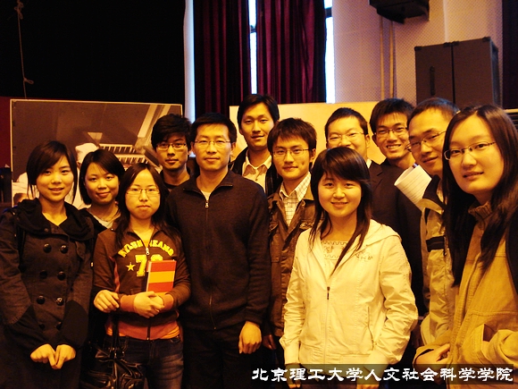 接下来进行的是由陈晗女士为我们组织的破冰游戏。在这个环节中,事先被随机分成了八组的同学们,按要求要在十五分钟内,与自己同组的同学共同协作讨论,选出一位组长,确定自己组的组名、组歌以及口号。紧迫的时间使之前还不甚熟悉的同学们都不再拘束,与大家一起分享自己的看法。随后,所有的小组轮流上台,与大家分享他们的讨论结果。同学们在游戏中找寻到了小组中的集体意识,为之后即将进行的分组讨论做好了铺垫。