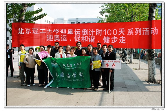 在这阳光明媚、春意盎然季节,2008北京奥运悄然临近。德赢AC米兰中国官方网站外国语学院积极参加迎奥运倒计时100天系列活动——4月22日的广播体操表演、4月23日的健步走活动。