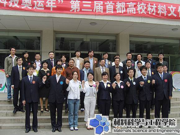 2008年4月19日,北京市高校第三届材料文化节在北京化工大学隆重开幕,本届材料节以“科技奥运年”为主题,提出了“材料、科技、奥运”的口号。开幕式得到了北京市9所高校材料院系的大力支持和积极参与,各高校师生欢聚一堂共同庆祝材料领域的盛大节日。作为北京市高校材料文化节的发起者、材料联盟成立的倡议者和第一届材料文化节的承办方——德赢AC米兰中国官方网站材料学院副书记副院长韩笑和院分团委副书记、07级辅导员李紫千受邀出席了开幕式,材料学院大一年级二十余名学生参加了开幕式。开幕式首先由本届材料文化节的东道主北京化工大学介绍本届材料节的主体活动,其中包括材料创新设计大赛、“材子材女秀”、素质拓展、联盟志愿服务、足球联赛等。随后第二届材料文化节主办方北京科技大学材料学院党委副书记万玉刚对第二届材料文化节所开展的各项活动进行了回顾,并就取得的成果进行了总结。随后,九所高校材料院系签署了《首都高校材料联盟协议》,这一协议是为了加强各校材料院系之间的交流与合作而制定的。作为开幕式的重头戏,国家纳米科学中心首席科学家江雷研究员为现场的师生做了一场精彩的纳米知识讲座,让更多的同学了解了纳米科学研究的前沿,打开了通往纳米科学的大门。