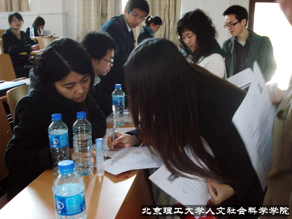 招聘会现场北理学子在仔细浏览华硕相关职位的介绍