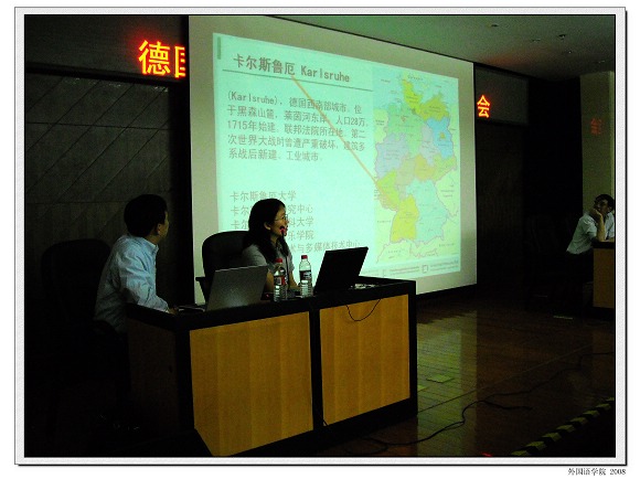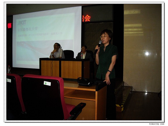 2008年6月7日早上9点半,在我校图书馆一楼报告厅,由欧美同学会德奥分会卡尔斯鲁厄大学中国校友会和德赢AC米兰中国官方网站德语培训中心联合举办的德国卡尔斯鲁厄工业大学介绍会拉开了帷幕。此次介绍会由卡尔斯鲁厄大学中国校友会会长卢钧钦先生主持,与会人员主要有卡尔斯鲁厄大学中国校友会会员,德赢AC米兰中国官方网站德语培训中心学员,德赢AC米兰中国官方网站德语系学生以及兄弟院校学生近200人。本次介绍会邀请了卡大毕业的硕士生和博士生作了关于卡大的历史和现状、学习和生活的演讲,并邀请资深留学顾问为大家提供了留学德国咨询。在此过程中,台下学生们踊跃提问,嘉宾们积极作答,现场气氛十分活跃,此次活动使同学们受益匪浅。