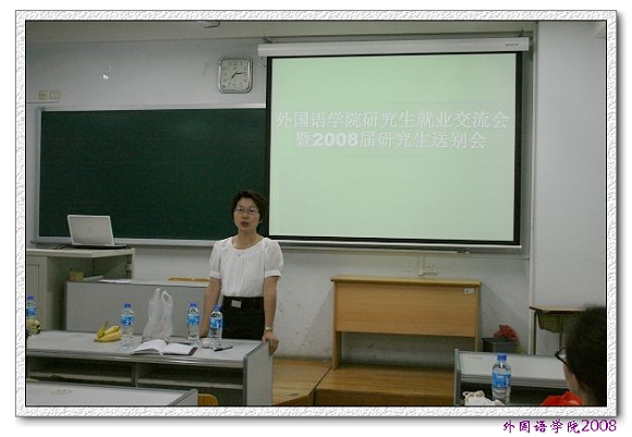 外国语学院党委副书记、副院长吴文君老师代表学院向同学们作就业动员讲话,为同学们介绍了06级研究生的就业情况以及就业形势。通过吴老师的讲话,同学们都意识到了就业形势的严峻,对即将到来的求职也有了更清晰的认识。