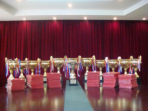 学生获奖的奖杯和证书