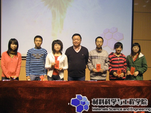 材料学院分党委书记张德平教授为英语奖学金的获奖代表颁奖