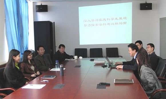 管理与经济学院副院长、国家国民经济动员教育培训中心常务副主任孔昭君教授传达了学校和管理与经济学院学习实践科学发展观动员大会的精神,然后,崔立新、张纪海、陈妍、刘铁忠、宋清等各位教师在学习有关件的基础上,分别发表了对学科建设的看法。最后,孔昭君教授和李志祥教授先后对各位教师的发言进行了总结,并阐述了坚持科学发展观,努力探索学科建设新局面的设想。