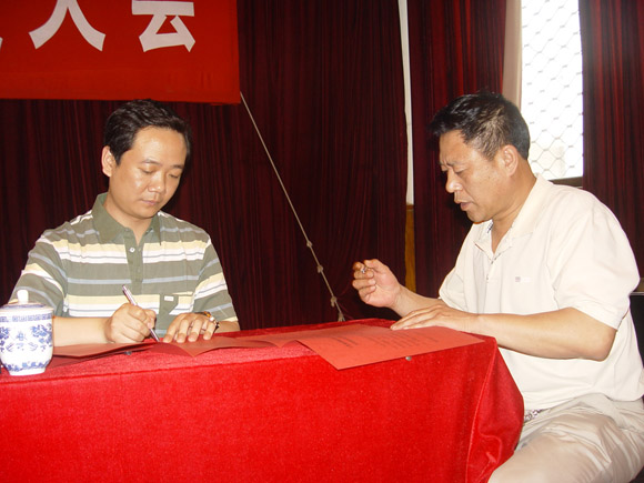 之后,食堂经理与中心主任签订了《优质服务承诺书》。