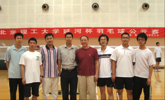2009年6月6日早上8点半,比赛正式打响。出席开幕式的领导及老师有:校团委徐强书记(左四)、刘亮老师(左三)以及体育部韩奇书记(右四)。本次比赛由校团委主办,社联羽毛球协会承办,校体育部协办。