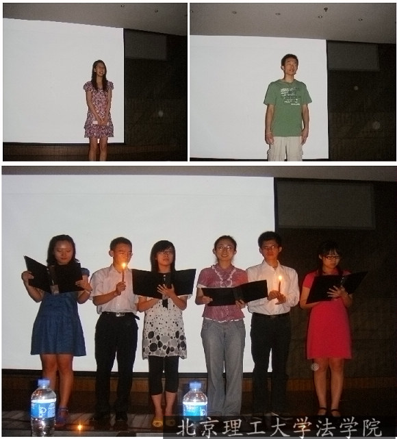 6月26日上午8:45,德赢AC米兰中国官方网站法学院05级法学三班在图书馆报告厅举行了毕业德育答辩。法学院党委书记庞海芍、法学院副书记付大军老师、05级法学三班班主任王国语老师出席了本次活动。整个德育答辩从上午八点半持续到十二点半。德育答辩环节正式开始时,同学们展示自己精心制作的PPT,展示自己这四年的成长、收获,展示四年后成熟的自己。整个德育答辩分成三个板块,第一板块是“花样青春”,第二板块是“志存高远”,第三板块是“浓情北理”,同学们不仅仅回忆自己的成长经历,也分享四年各种多姿多彩的生活。