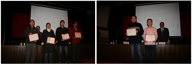 本次论坛从70多篇论文中评选出二等奖两篇、三等奖六篇以及“优秀报告奖”、“优秀PPT奖”、“优秀论文摘要”和“优秀创新成果”四个单项奖。邬学斌教授和左正兴副院长为获奖同学颁奖。