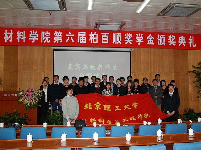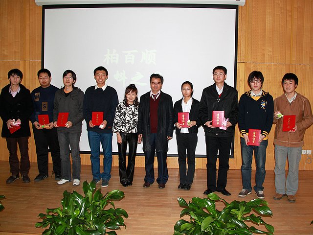 2009年12月12日,材料学院第六届柏百顺基金颁奖典礼在我校国际交流中心三层报告厅隆重举行。柏百顺石油化工有限公司董事长蔡伟清、夫人蔡四莲、儿子蔡新龙、女儿蔡静怡、公司技术部经理包祥俊、材料学院院长邹炳锁、副院长曹传宝、副书记副院长韩笑、教授周政懋等出席了本次颁奖大会,材料学院部分师生参加了大会。
