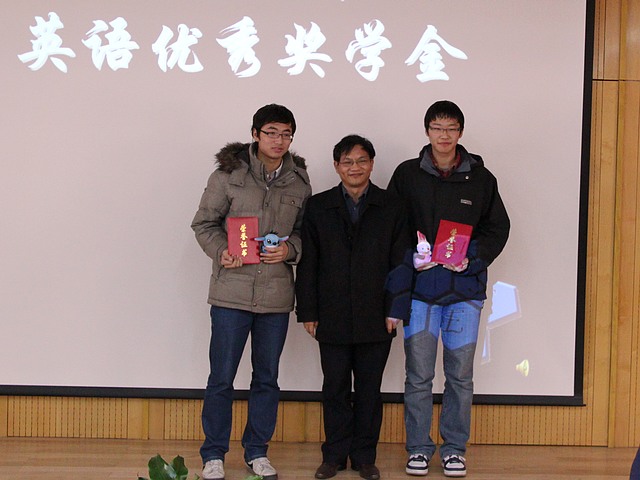 通过国家英语四级考试的学生代表上台领奖。