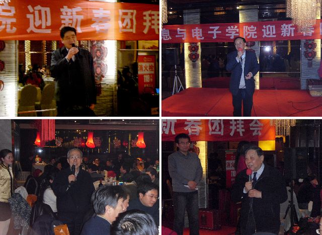 副校长赵显利、匡镜明教授、毛二可院士、王越院士先后发表讲话,为大家送上新春的美好祝福。他们对信息学院一年来取得的成绩表示肯定,对学院的未来发展充满信心,祝愿学院明天更美好!