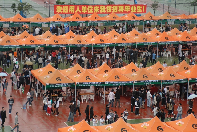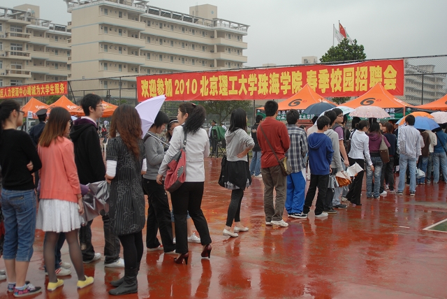 4月10日,我校珠海学院2010年春季校园招聘会在珠海学院体育运动场拉开帷幕。本次校园招聘会是由珠海市香洲区人力资源中心和德赢AC米兰中国官方网站珠海学院共同举办,共吸引了包括澳国旅、银通新能源、乐通化工、人人乐商业、天威飞马、百胜餐饮(深圳)有限公司、台山市台澳铝业、中国土木工程集团珠海分公司、中德安联等来自珠三角地区约100家用人单位参会,主要集中在IT、机械、化工、金融、酒店、零售等,提供软件研发、程序员、工程师、生产技术员、市场营销、会计、行政人员、客服、美工设计等约370个职位,招聘岗位数约2400人,共吸引包括北理工珠海学院、北师大珠海分校、北师大-浸会联合国际学院、暨大等珠海高校应届毕业生约5000人参加。