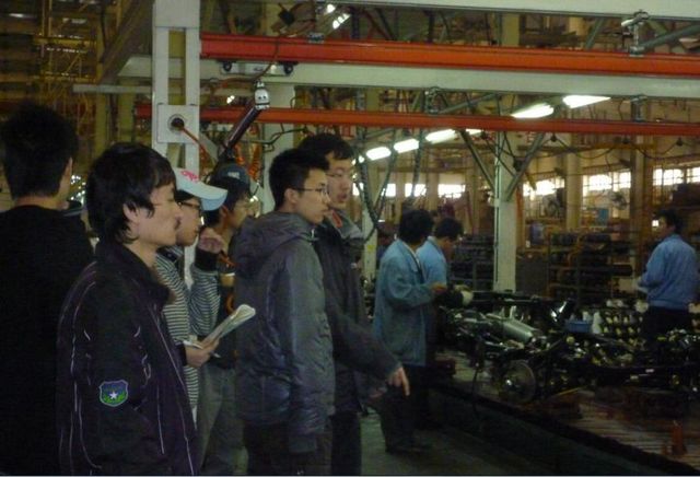 为了配合专业课《工效学》、《生产运作与管理》的学习,4月15号上午,机械与车辆学院工业工程专业03320701班同学在杨志兵、薛庆、胡耀光、 贺鸣几位老师的带领下参观了北京汽车制造厂有限公司(即BAW)顺义厂区。旨在通过实地体验,观察生产实际中与流程、设施布局、调度管理、企业文化有关的各类实际情况,运用专业理论知识思考实际问题并寻求解答,加深理解,真正达到学以致用。首先,该厂负责接待的有关领导介绍了工厂历史沿革,播放了该厂特色产品――某军车的宣传片,大家对BAW的发展史及现状有了初步的了解。