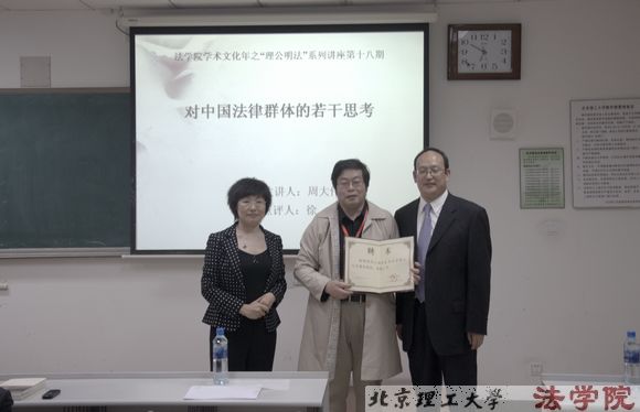 报告由法学院副院长张艳丽教授主持,在报告正式开始之前,法学院院长谢晖教授为周大伟教授颁发了特聘教授证书。