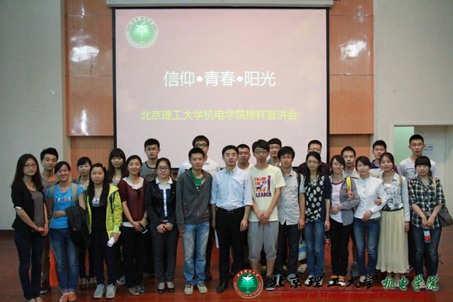 2013年5月28日,按照校团委“信仰•青春•阳光”主题教育活动的总体安排,结合机电学院“机电先锋”榜样评选活动,学院开展了“机电先锋”榜样宣讲会。机电学院和基础教育学院机械学部相关辅导员出席。基础教育学院机械学部2011和2012级300名学生参加。宣讲会由机电学院团委书记章涛主持。