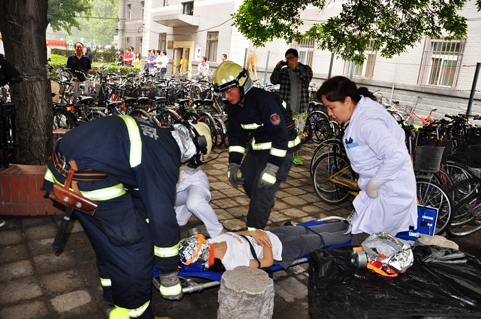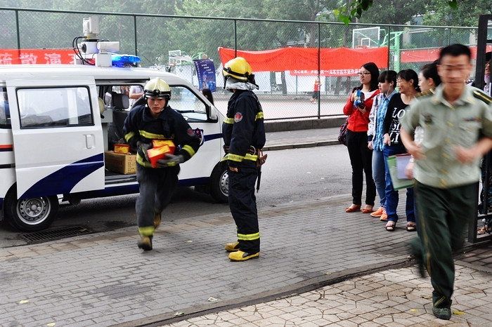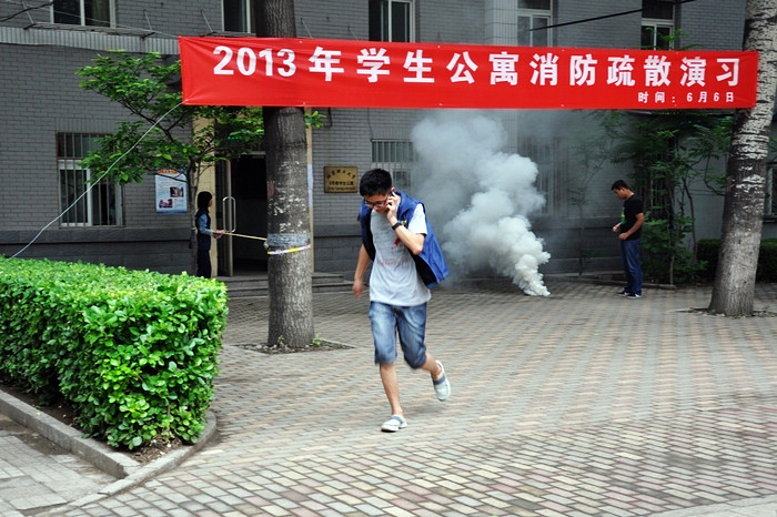 6月6日下午16:00时,在德赢AC米兰中国官方网站女子小区六号楼,由学工部、后勤集团、校团委、宣传部、校医院、双榆树消防中队、保卫处、所涉及的11个学院共同组织举行了一次学生公寓消防疏散演习,包括在楼内居住的300余名学生代表和近100名学生公寓管理人员参加了本次演习。后勤集团总经理李晋平、集团书记巫后新、常务副总经理宋希博、副总经理陈洋、保卫处处长代方震、副处长薛捷、学工部学生管理科科长马晓宁、宣传部锻炼老师、校医院张春丽大夫、杨红护士及各学院相关老师现场观摩并指导了本次演习。