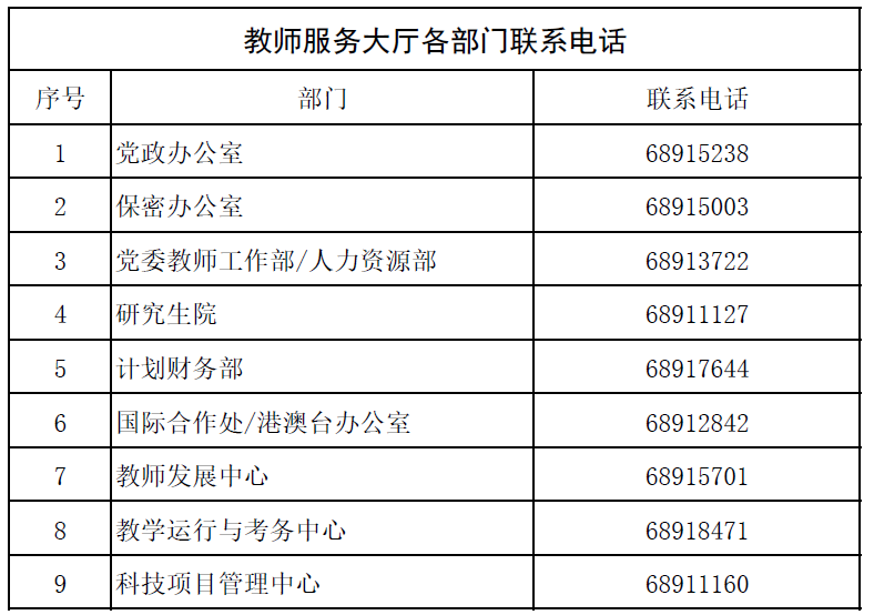 (注:保密办公室、教务部暑假期间所有业务办理地点临时调整为中心教学楼;资产与实验室管理处暑假期间所有业务办理地点临时调整为逸夫楼。部门办公电话详见附件。)