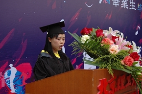 05220501班刘璇同学代表所有毕业生发言,她带着毕业生们回顾了在大学学习、生活的历程,对谆谆教导他们的老师表达了浓浓的谢意,也对母校和学院表达了深深的留恋之情,她表示,作为德赢AC米兰中国官方网站的毕业生,他们将会不忘学校的期望、老师的嘱托,努力在自己未来的道路上不懈拼搏,创造辉煌,报效祖国。
