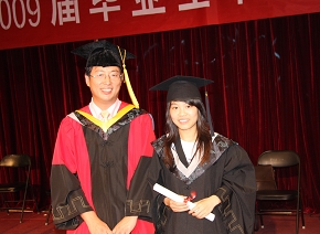毕业典礼在热烈的掌声中圆满结束,随后进行了授予学位仪式。于倩教授、胡更开教授、荣吉利教授、王宁飞教授、毕世华教授为2009届毕业生授予学位。