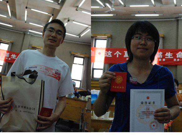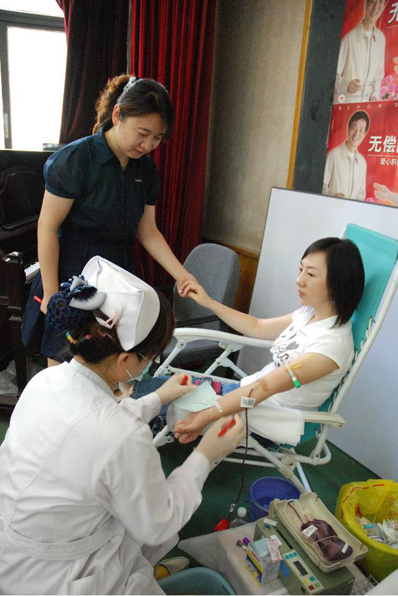 校团委副书记衡靖老师也莅临现场,亲切问候献血者,鼓励志愿者继续提供优质服务,并感谢北京市红十字血液中心血液科的医生和护士的敬业奉献。尽管天气炎热,汗水不停地顺着脸颊滴下,对与献血者和工作人员都是一大考验,但现场没有一句抱怨,没有一句不满,所有的人默契配合,现场各项工作有条不紊,气氛温馨感人。当得知有的男生捐献400毫升血液时,大家都会为他鼓掌,主动端起一杯糖水送到他的跟前。