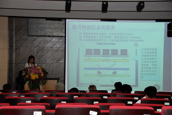 图书馆副馆长、委员崔宇红做了《超越传统,创造未来:一流大学图书馆建设与评价研究》的学术报告。报告通过对国内外一流大学图书馆的全景扫描、横向对比和案例分析,提炼出一流大学图书馆的特征,阐述了图书馆未来发展趋势。