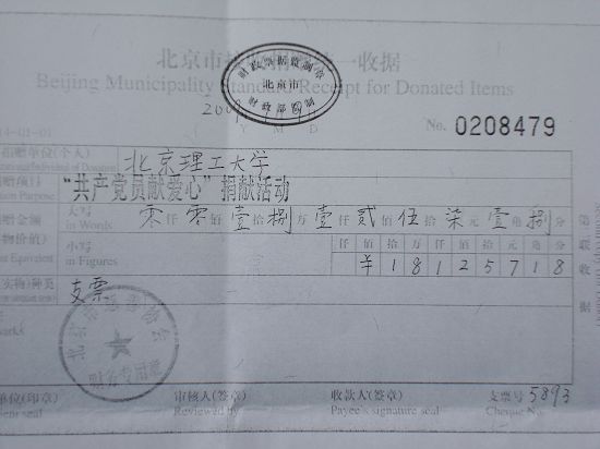 “七一”前夕,按照北京市委教育工委的有关精神,我校开展了“共产党员献爱心”捐献活动。此项活动得到了全校广大党员和群众的积极响应,各分党委、直属党支部和党总支纷纷把此活动作为纪念党的生日的重要活动内容之一。截至7月3日下午5时,我校共接收2647名党员、350名群众的捐款合计181257.18元。